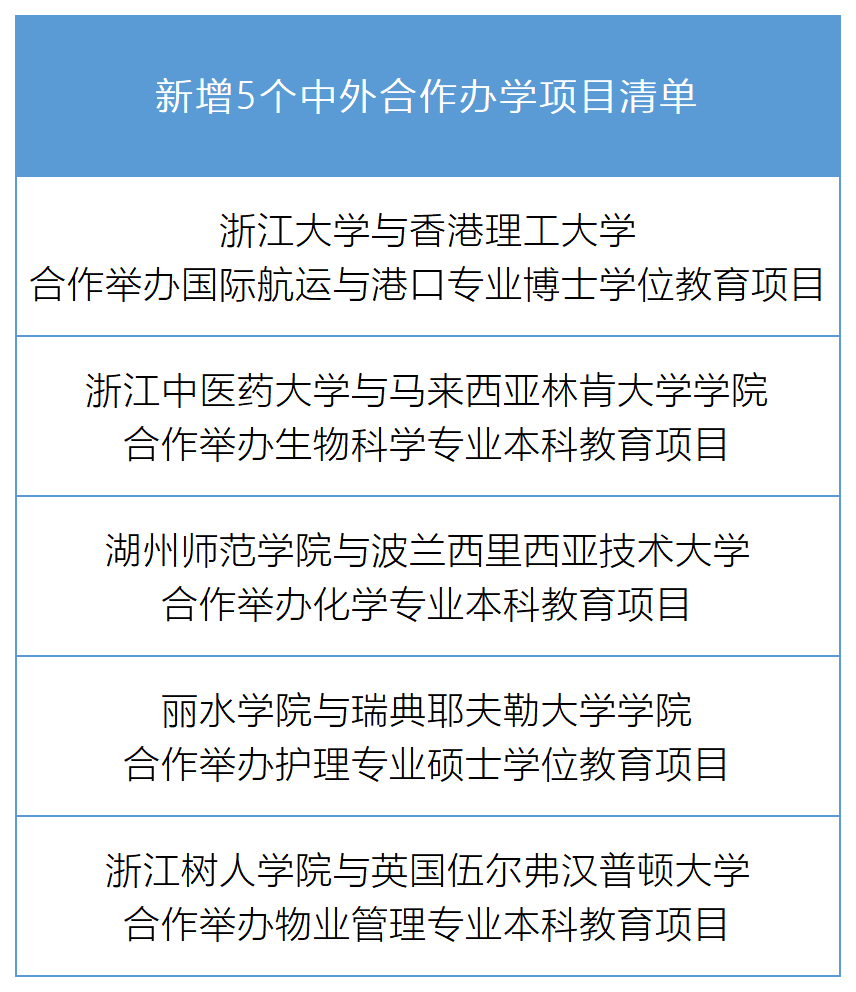 - 浙江新增一批中外合作办学机构和项目