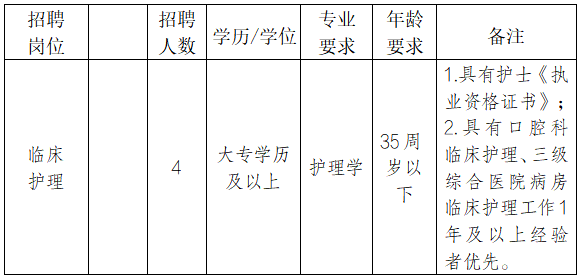 - 舟山市口腔医院因工作需要,现面向社会公开招聘编外工作人员4名,有关事项公告如下:
